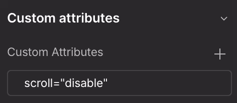 On elements that should lock the page and disable scrolling when clicked (e.g. the button to open the popup), add the following custom attribute in the element settings: scroll="disable"